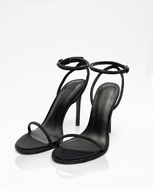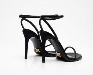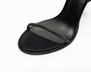 ESTÉA in Noir Velours ist die Verkörperung zeitloser Eleganz – gefertigt aus tiefschwarzem 100 % Seidensatin, umhüllt von glitzernden Kristallriemen, die ein Gefühl von diskretem Luxus und geheimnisvoller Stärke vermitteln.